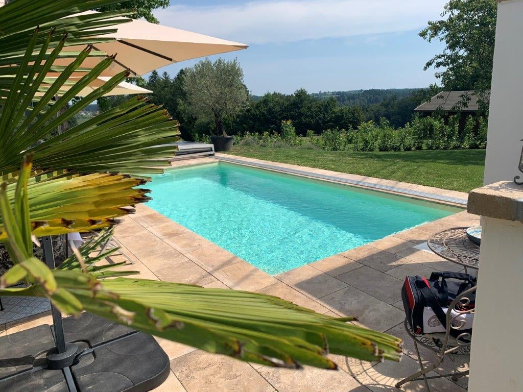 Polypropylenový bazén se zastřešením jsme realizovali v rakouském Salzburgu. Bazén o rozměrech 6000 x 3000 x 1500 mm s vestavěným rohovým schodištěm PIZZA. Skimmer a trysky v ABS konstrukci s bílou barvou na krátkých stranách a LED bílé osvětlení doplňuje celkový dojem. Technologie je umístěna v podzemní šachtě na krátké straně.