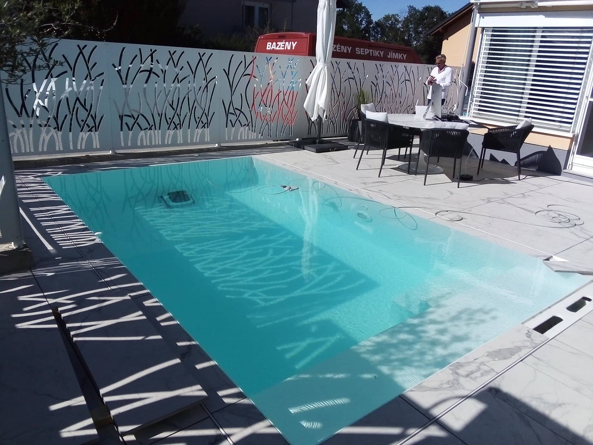 Byli jediní, kteří mi uzpůsobili bazén na míru. Potřeboval jsem žlábek vyložit stejnou keramikou, která je i na okolní terase. Ostatní firmy mi toto neumožnili. Práce se mi velmi líbí.