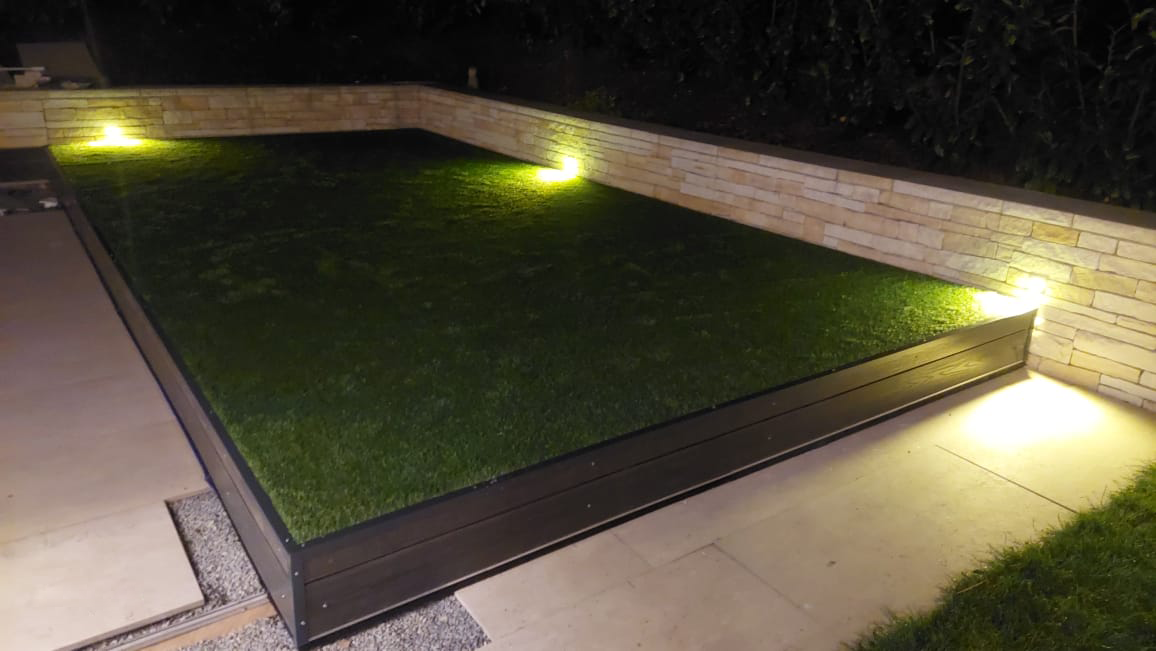 V Hlavním městě Praha byla realizována pojízdná terasa s krytinou za pomocí voděodolné překližky a umělého trávníku s elektrickým posuvem v podzemní šachtě. Klient zvolil umělý trávník z důvodu přizpůsobení se okolní ploše, která je tvořena italskou keramikou pískové barvy a právě travnatými plochami. Řídící jednotka s napojením na bodové osvětlení a motor se nachází ve vzdálenější technologické místnosti. Zajímavostí je, že se terasa nachází na střeše bytového komplexu a vrací tak místo, které bazén zabral zpět k užívání rezidentům.