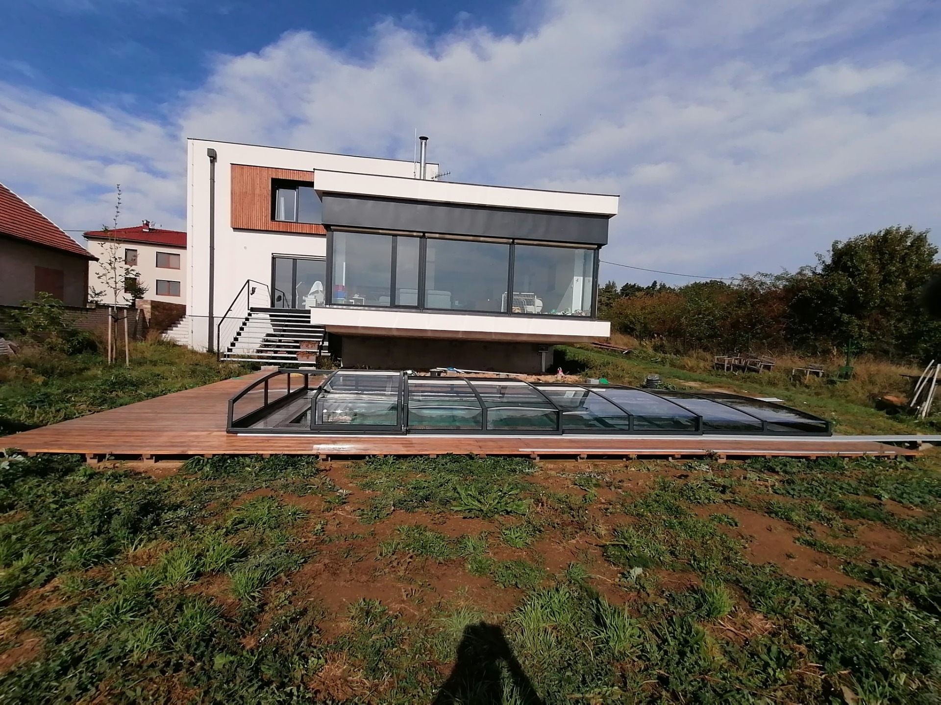 Ocenil bych možnost sklopné terasy, kterou jsem viděl v zahraničí. Ta se v ČR nevyrábí, ale nakonec jsem našli řešení s příčným posuvem.