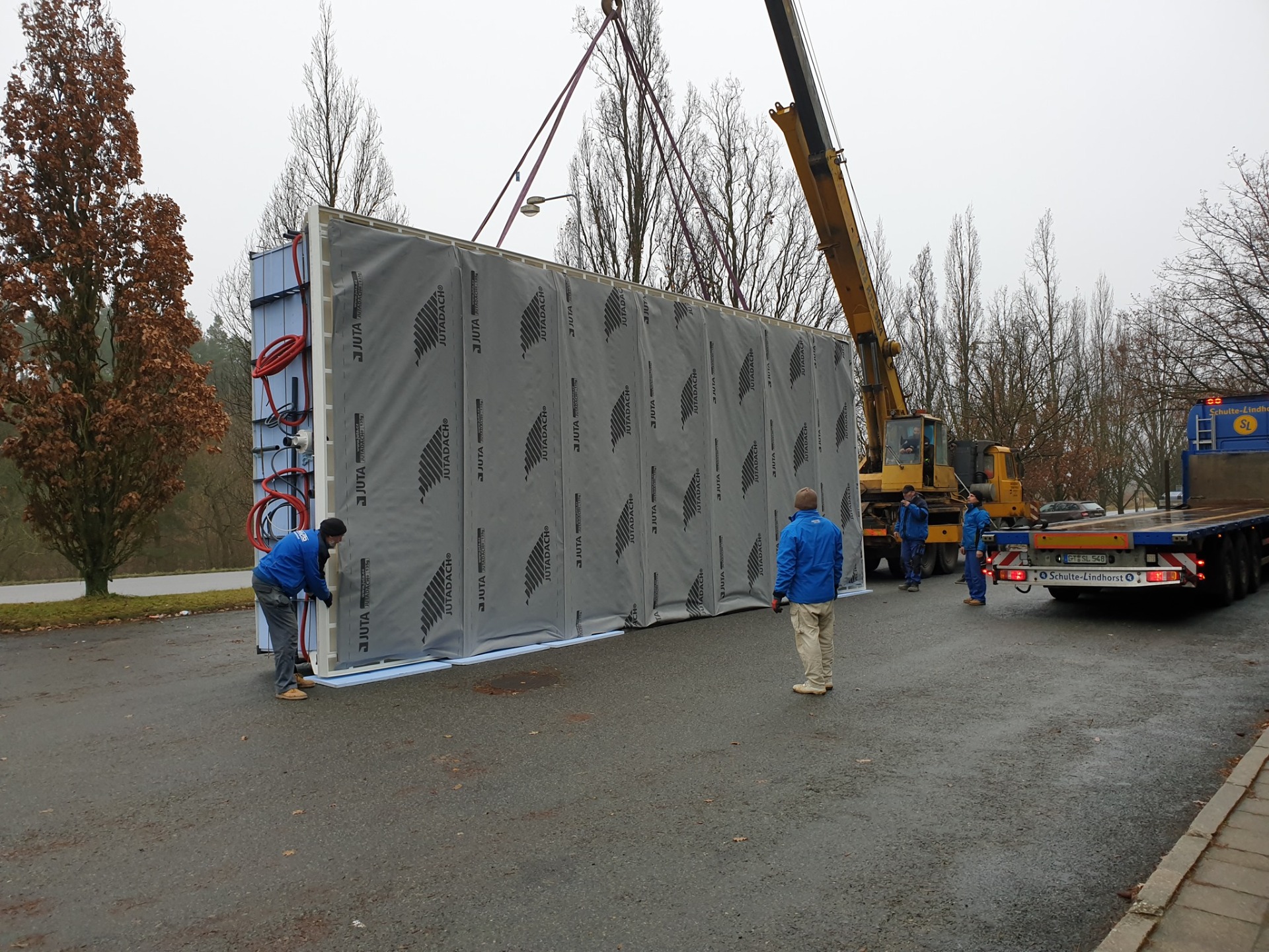 Nízké jednokolejnicové zastřešení NIECA bylo nainstalováno v německém Bielefeldu. Výplň tvoří plný, čirý polykarbonát o síle 4 mm. Čtyřsegmentovou antracitovou konstrukci lemuje po celém obvdu EPDM těsnění o výšce 8 cm. Vstupní posuvné dveře se nachází u domu v nejvyšším segmentu. Nechybí aretace ani uzamykání dveří. Pevný betonový podklad je obložen dřevem, které koresponduje s okolním přírodním vzhledem.