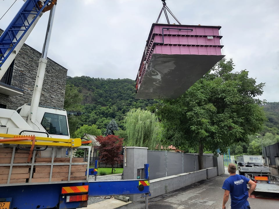 Byli jediní, kteří dokázali bazén sestavit na místě. Žijeme v horách kde je špatný přístup.